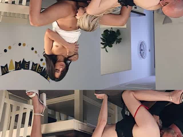 Family Strokes - Naughty Stepsisters Seduce Their Stepdad and Bang Him to Celebrate the New Year