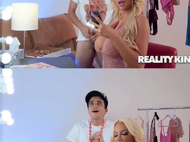 Glamorous blonde Nicolette Shea fucks a handsome porn actor