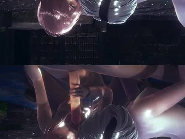 Animated scene of reverse cowgirl from Nier Automata