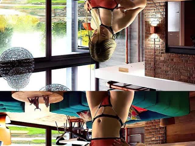 Observing the Maid in a Miniskirt, Wearing No Bra, Wedgie G-string Panties and Knee High Stockings, From Under the Desk