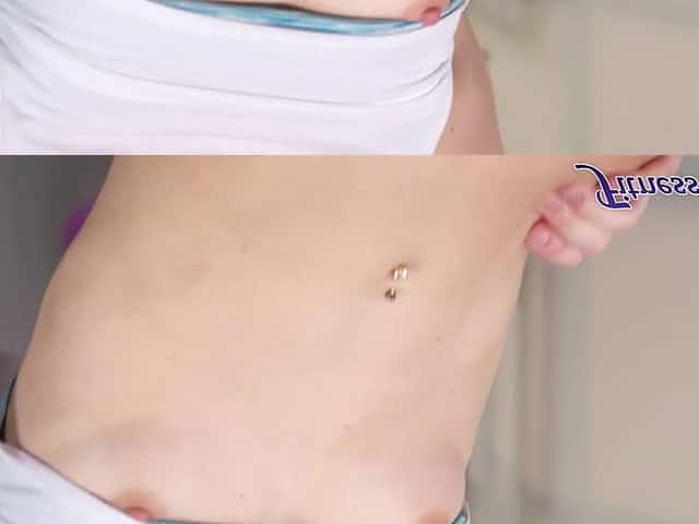nippleringlover horny milf flashing pierced pussy small boobs with extreme big nipple piercings outdoors