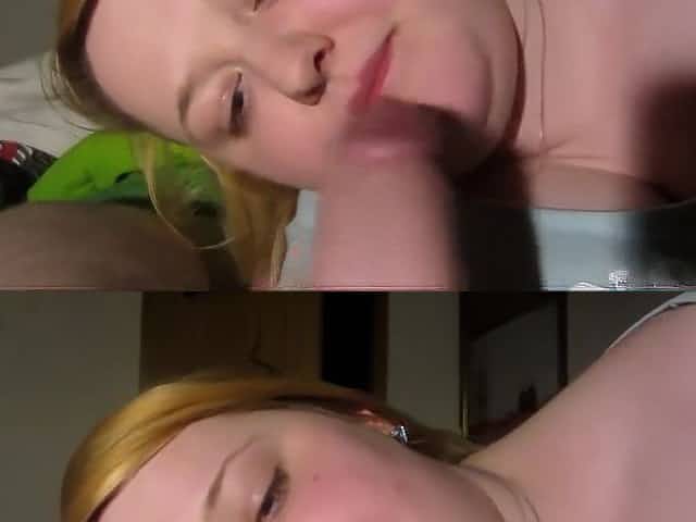 naughty blonde with pierced nose Haley Reed swallows big cock on a pov camera
