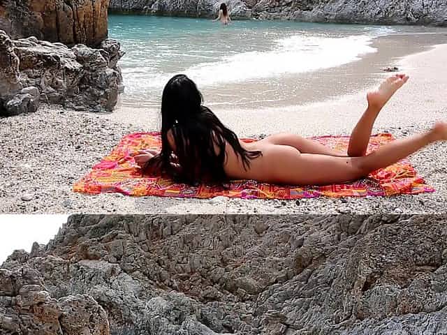 Topless girls at nude beach think they are being recorded