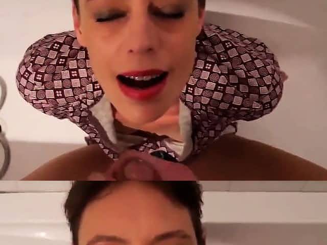 Short hair mature takes facial in the bathtub
