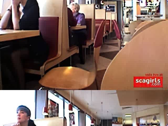 Busty babe flashing in a restaurant