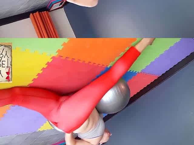 Regina Noir practices yoga in gym wearing see-through red leotard - full nude movie