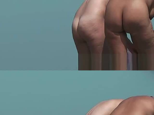 Nude man spills drink on woman's ass