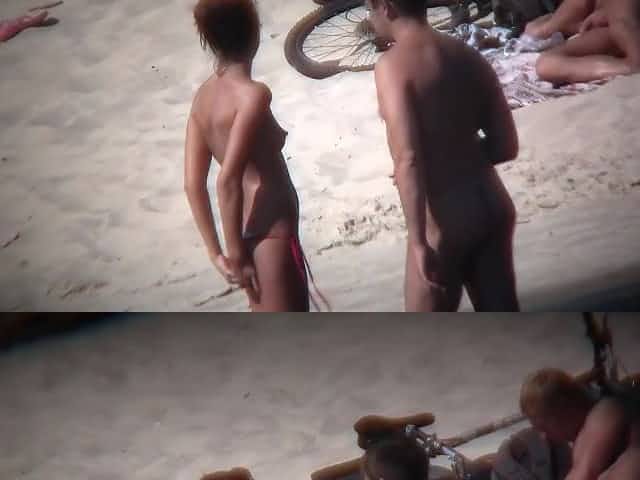 Nude couples relaxing on the beach and shot on cam