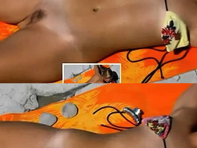 nippleringlover undressed beach tunnels in pierced teats stretching pierced cunt wide open for peeing