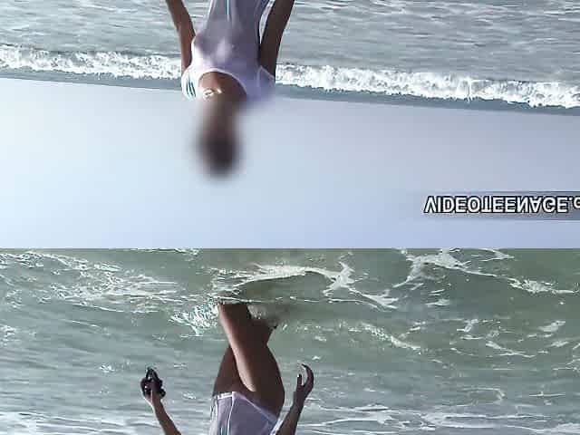 Brown haired teen naked and naughty in beach movie