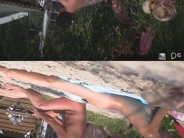 Secret Voyeur Camera Caught Nude Pussy at the Beach Oiling