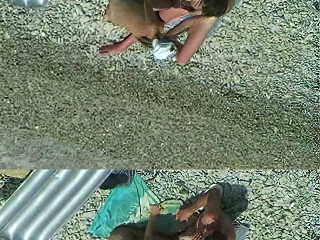 Outdoor voyeur of nude couple on beach having hot sex