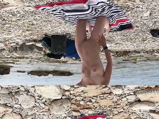Morning beach nudity caught on by beach hidden cam