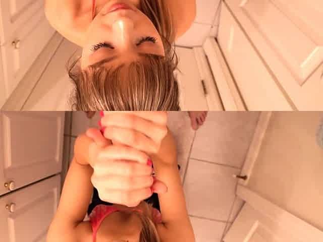 Excellent cock riding and nude blowjob with the step sis