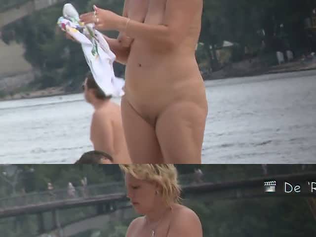 Candid vid of sexy nude blond at the beach