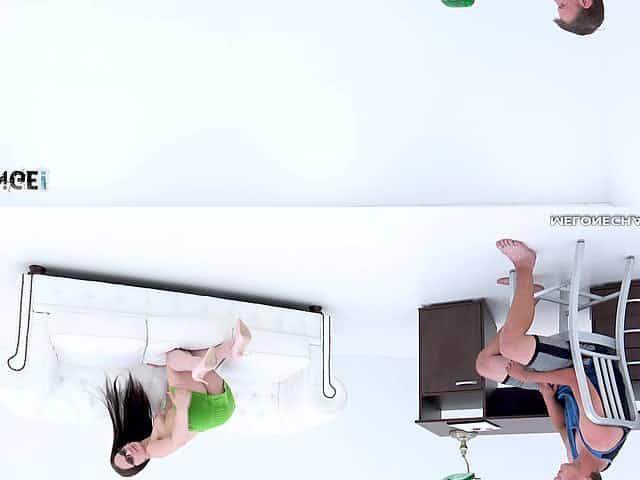 Cute brunette Sheri Vi gets naked for a hunk's erected boner
