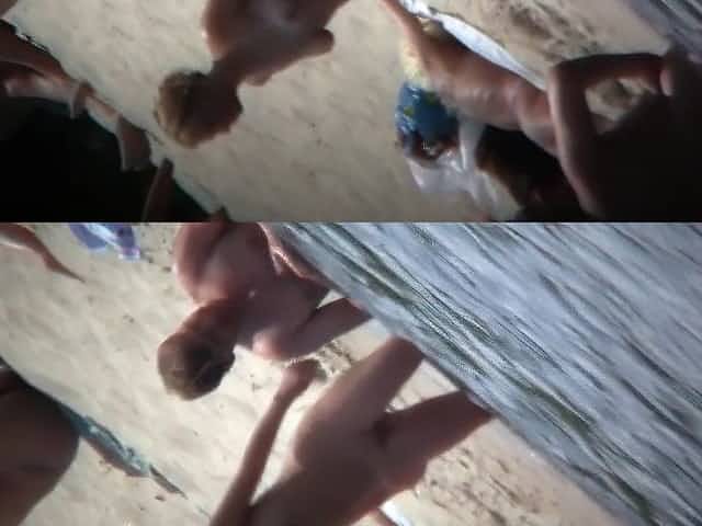 A horny nude beach couple fooling around while being filmed by a spy