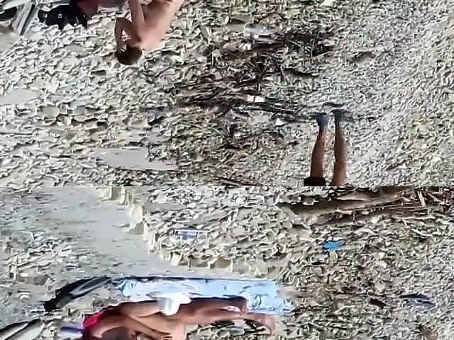 Sensual girl jumps on her boyfriend's fat dick at the nude beach