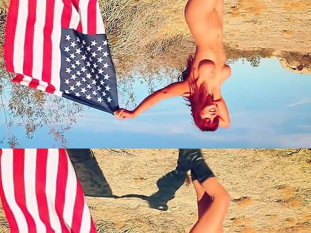Redhead babe is walking naked with american flag