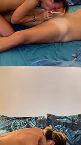 Mon mec me surprend pendant que je me doigte, me baise comme une chienne et m'asperge de sperme