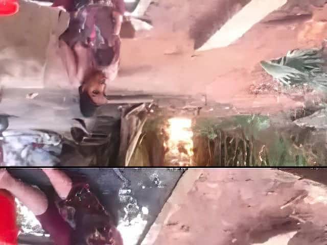 Spycam catches village aunty bathing nude outside - voyeur