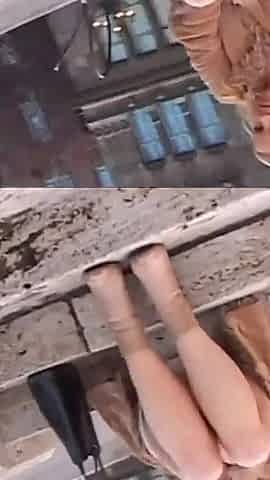 Melody squirts through the window on the head of passersby!