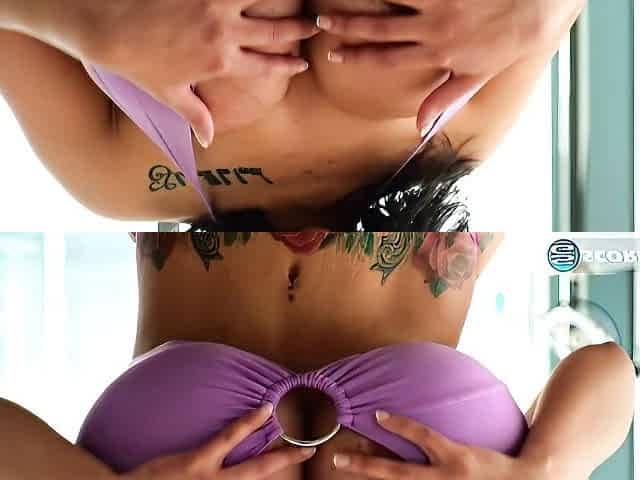 Titties with tan lines on his naked lady taking big boner