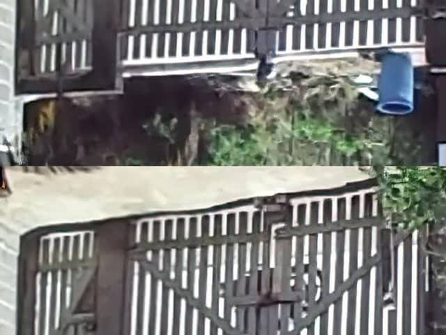 My wife receives the delivery guy on street dressed with a opened robe