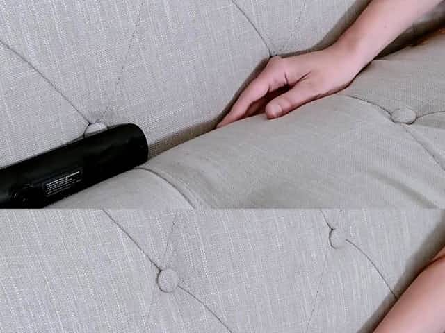 Nude housewife teasing in couch solo tit show