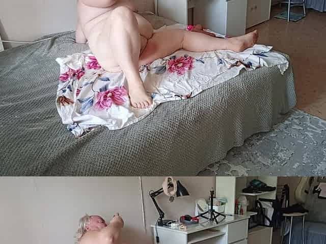 Chunky wife of my neighbor exposing her large brassiere buddies and her naked booty