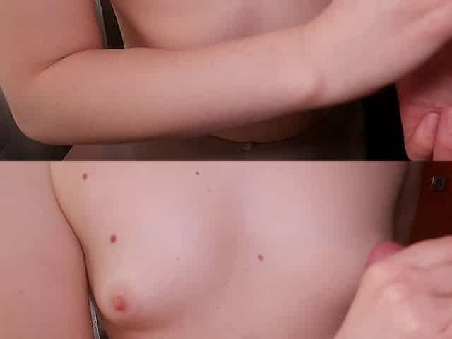 18 year old babe with tiny tits sucks cock