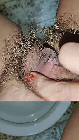 Rubbing her pussy, pissing