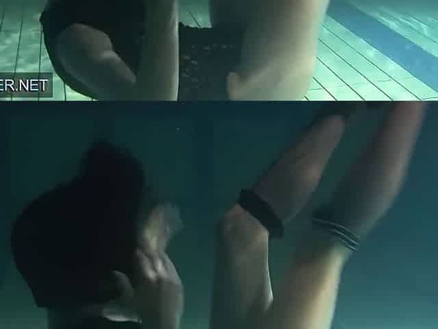 Lesbians and solo girls kiss underwater