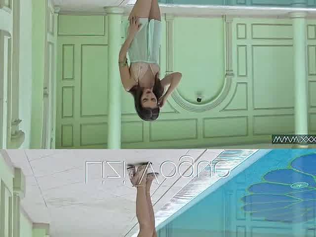 The sexiest petite teen Lizi Vogue swims naked in the pool