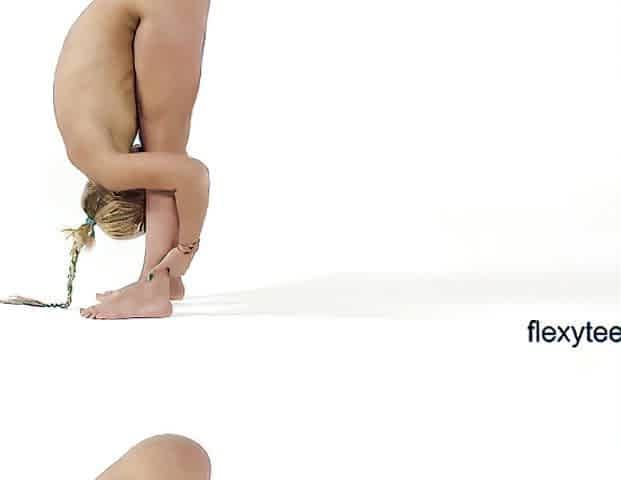 Public nudity scene with naked sexy nudist brunette