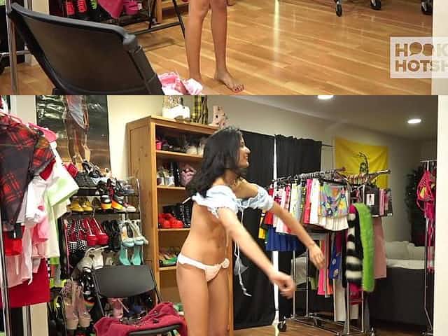 Sexy big ass teen Ana posing in high heels before hot striptease action