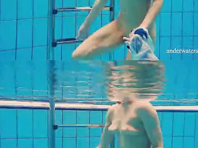 Lovely babes are enjoying while swimming naked inside the pool