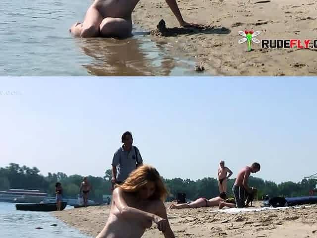 Nude beach girl filmed enjoying a sunny day at the beach