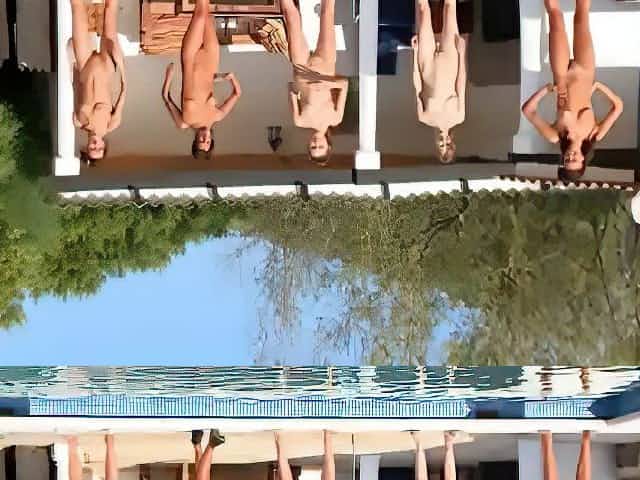 Six naked girls by the pool from france