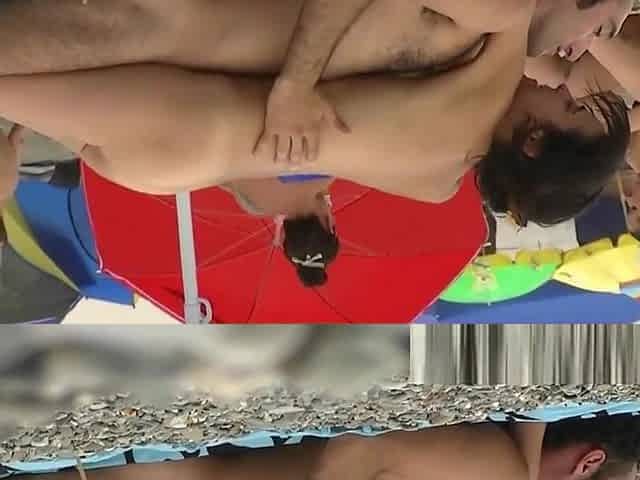Nudist couple spied having sex on the beach