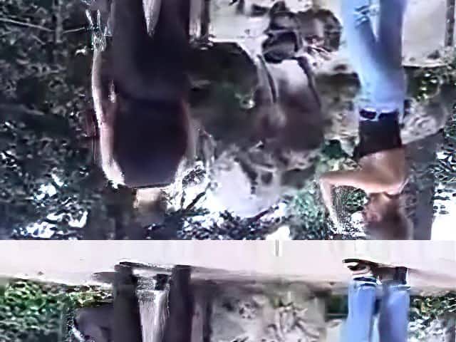 People walk by during the time that Exhibitionist Wife gets climax