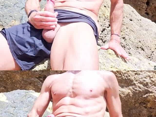 Sports chap wanking on a public beach - risky but so worthy to do