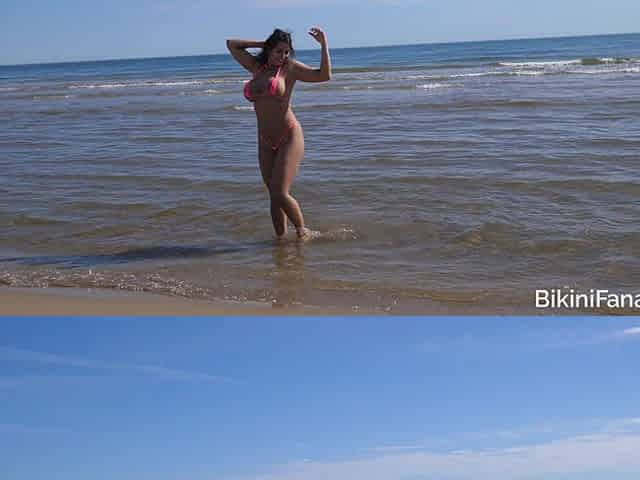 Thick bikini amateur gets naughty in public