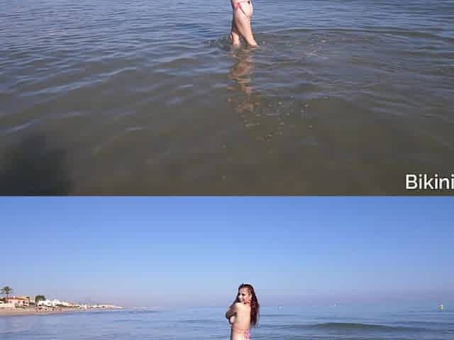 Amateur bikini model bares it all on a public beach