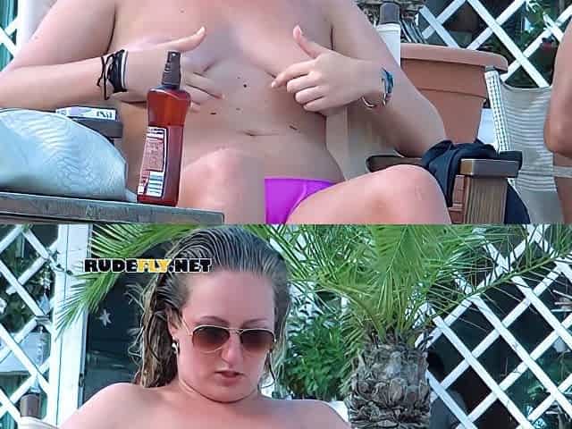 Hot busty topless chicks at public nudist beach