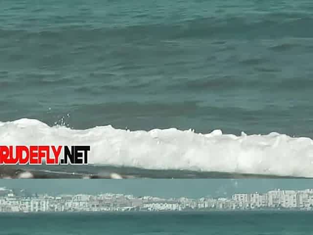 Nudist video at the beach has shy girl playing in the water