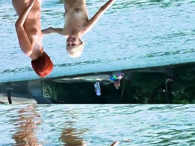Hot nudist teen jumps in the water