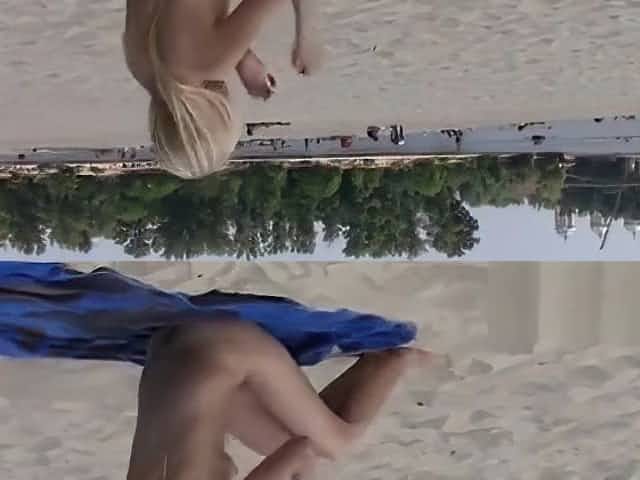 Naked teens fool around on public beach (just-drew)