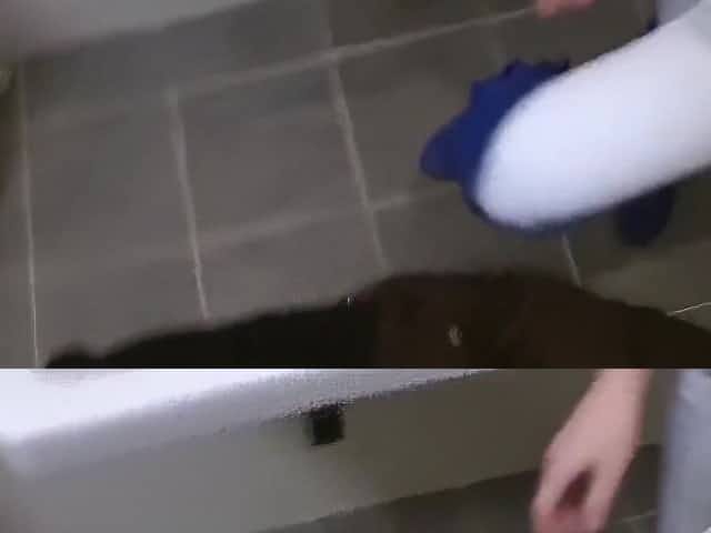 Japanese amateur drenches staircase after pissing