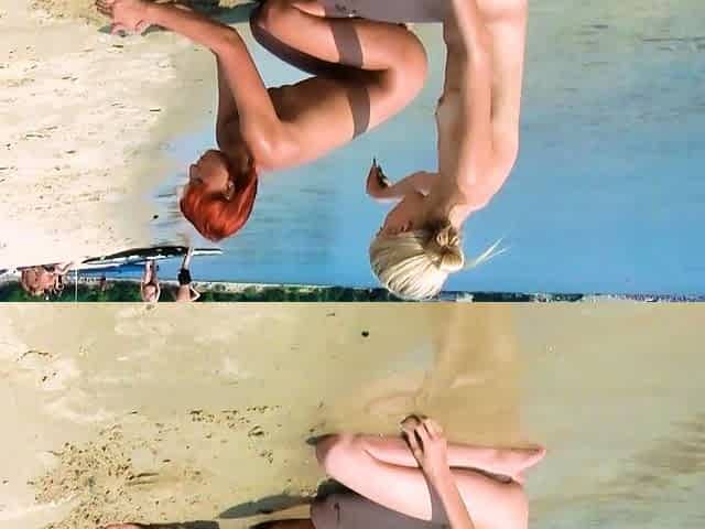 Nudist girl caught doing beach yoga